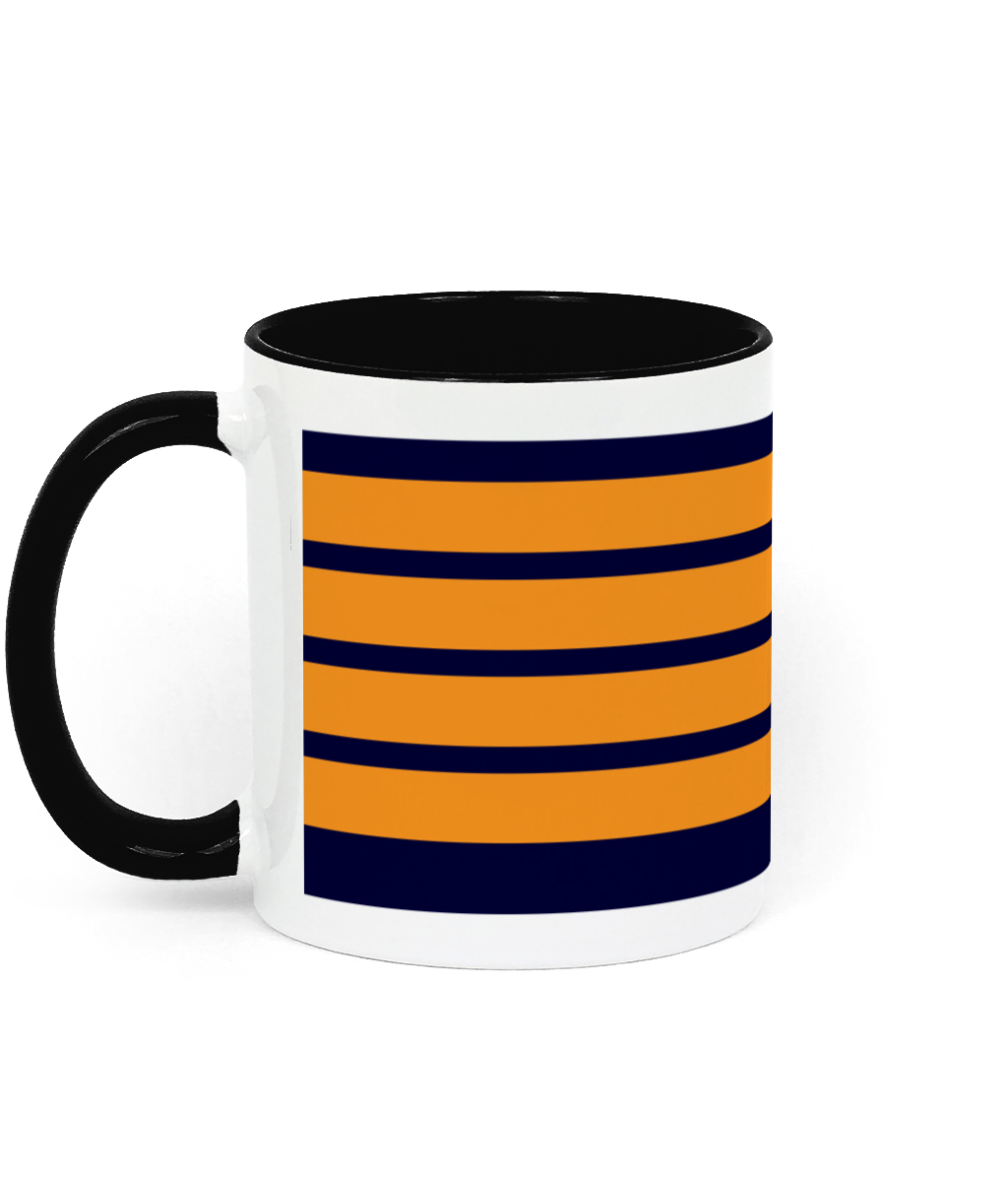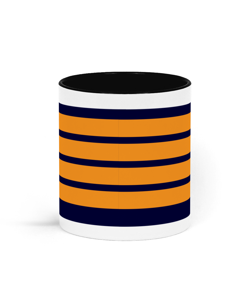 Enjoy your coffee with this fun 11oz ceramic mug featuring aircraft captain’s armband stripes. Glossy white with a coloured handle, and fully dishwasher and microwave safe—perfect for aviation fans.